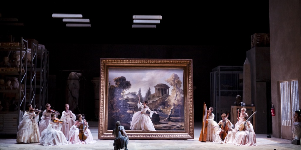 и воспроизводится тот исторический стиль постановки, который происходил во время премьеры оперы 20 февраля 1724 года в лондонском Королевском театре. Одетые по моде того времени музыканты и вокалисты совершенно иначе двигаются, чем в предыдущем акте и действо напоминает ту постановку оперы Люлли, которая потрясла меня несколько лет назад.