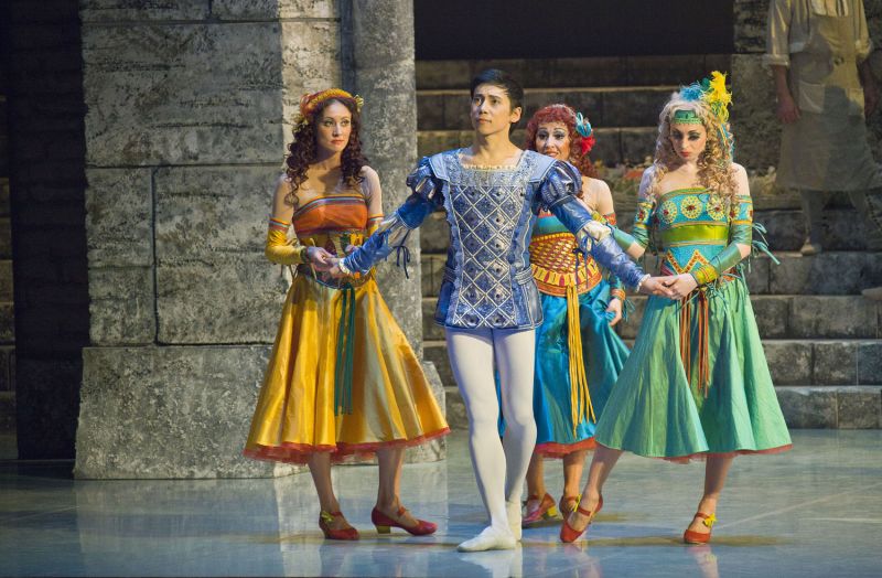 Впрочем, колоритные уличные танцовщицы, наряженные как Эсмеральды — очевидно, не без намека на самую знаменитую балетную цыганку, пляшут вокруг своего любимца Меркуцио до самой его смерти в конце второго акта. Сильные работы Евгении Ляховой, Альбины Рангуловой и Ляйсан Гизатуллиной.