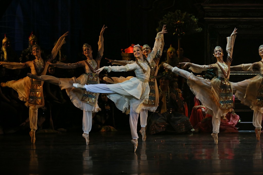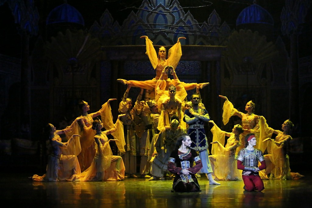 Четыре большие танцевальные роли достались солистам-мужчинам, и только одна балерине — приме труппы Кристине Андреевой (первый день) и Юлии Поздняковой (второй). Отличные получились работы у Нурлана Канетова (Визирь), Олега Ивенко (Нурадин) и Глеба Кораблева (Тимур), не говоря уже о двух исполнителях Духа Батыя.