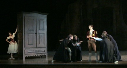 В предыдущей картине содержание рассказывалось в основном через танец. Это и испанский танец с тамбуринами, и цыганский танец Пахиты, и вариации Люсьена и пресловутый Танец с плащами (Danse de capes), который когда-то исполняли танцовщицы-травести, у Лакотта отданный мужчинам, и па де труа, транскрибированное в иной, чем у Петипа манере.