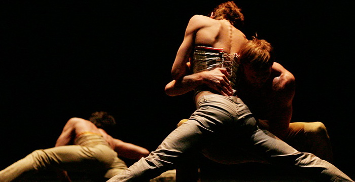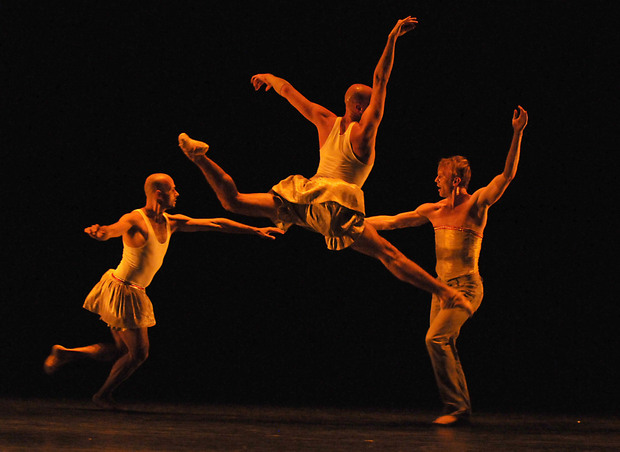 танцовщики с тщанием выполняют задание хореографа — искать в мужском движении женственные интонации, в женском — мужские.