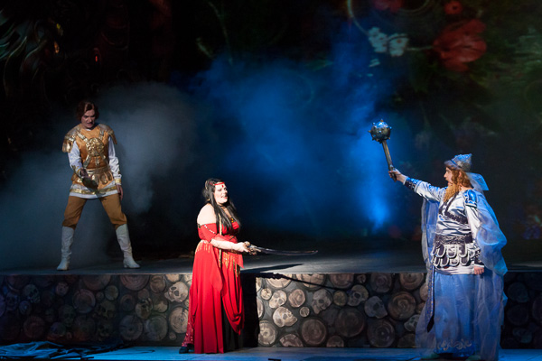 — его не вполне премьерский тенор, который в романтических центральных ролях иногда теряется, здесь был весьма уместен и впечатляющ: певцу удался образ злобного бессердечного колдуна. Красивым звуком пленяла Татьяна Гаврилова (Царевна), создав образ нежной страдающей красавицы. Наталье Аникиной (Кащеевна) удались сцены колдовства и обольщения, её томный голос в них прозвучал убедительно, а вот стали, брутальности, напора в хитовой арии «Меч мой заветный» несколько недоставало.