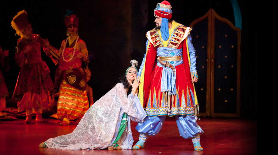 лирический танец Марины Вежновец (Зобеида) более нежен и трепетен, изящен и эфемерен, чем это принято повсеместно, страстный порыв впечатляет в каждом движении блистательного Игоря Оношко (Золотой раб). Прекрасную оправу главным героям дают фактурный Олег Турко (Шахриар) и выразительный Дмитрий Шемет (Шахезман), пародийно-гротескный Виталий Цынкевич (Главный евнух), лёгкие и гибкие одалиски Александра Чижик, Людмила Хитрова и Надежда Филиппова.