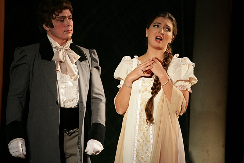 — Наш постановщик в театре при Московской консерватории в свое время был режиссером ГАБТа и впитал многое от школы и методов Покровского. Так вот он говорит, что сцена письма – это ночь ослепительной надежды. И в этой сцене он запрещает актрисе страдать. Это, пожалуй, идет вразрез с моим пониманием этой сцены, мне всегда казалось, что все время улыбаться в сцене письма неестественно. Ведь на протяжении этой картины Татьяна проходит смену многих чувств – она испытывает и надежду, и страх, и даже пророчествует, когда говорит: «И суждено совсем иное». Конечно, я против нытья над безрадостной перспективой жизни Татьяны, которая, как мы знаем, предстоит ей в будущем, против оплакивания ею себя. Но в фестивальном спектакле я все-таки пыталась показать контрасты в ее душевном состоянии.