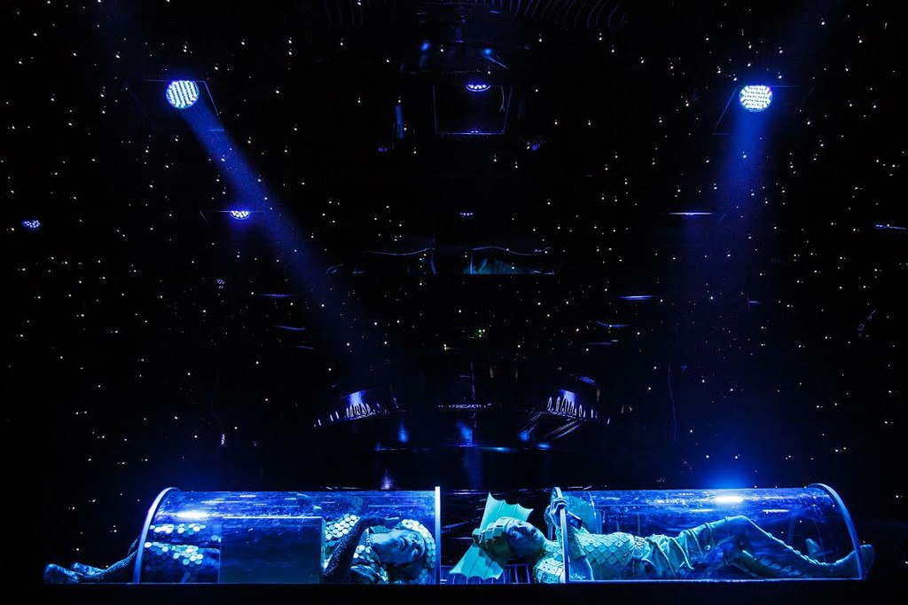 Трогательно-огромный глаз с ресницами, открывающийся, чтобы показать «Луну». Зажигающиеся с «телевизионного» пульта Экклитико, запросто так, мириады звёздочек на чёрном куполе неба, отражающиеся в зеркальном потолке и стенах. Всё вроде бы просто, и явно не очень дорого сделано, но несколько раз аплодисменты вспыхивали при новой «картинке», так точно попадание в общий строй.