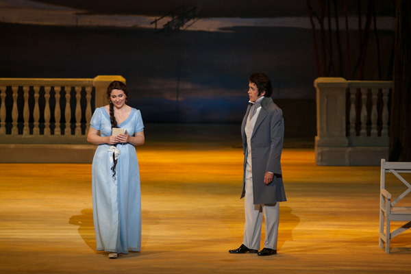 Тем не менее, некоторые новации постановки (новации не по сравнению с версией 1986 года, которой я не видел, а относительно классических трактовок этой оперы вообще) приятно удивили. Например, письмо Татьяны, которое Онегин возвращает ей дважды: не только традиционно в третьей картине, но и в финальной, выдавая его за последний свой аргумент.