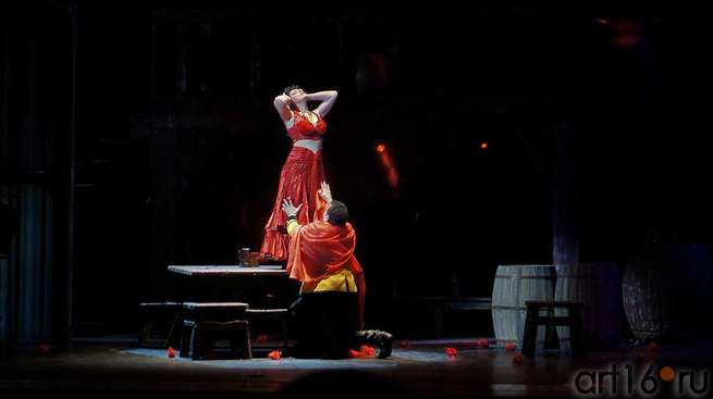 Еще одна фестивальная постановка — «Кармен» — в нынешнем своем виде отличалась от премьерного спектакля трехгодичной давности: были убраны все атрибуты процесса киносъемки, сопровождавшего спектакль по первоначальному замыслу балетмейстера Георгия Ковтуна, создавшего спектакль.