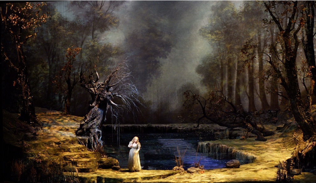 Живописный лес есть настоящий лес – глаз не оторвать! Лесное озеро, где живет Водяной и водная нимфа Русалка, влюбившаяся в сказочного Принца, и есть дивной красоты озеро. Баба Яга (Ежибаба) – самая настоящая и весьма колоритная, знакомая нам с детства Баба-Яга. Принц, зачарованный Русалкой, но в итоге погубивший и ее, и себя, – самый настоящий сказочный принц, а замок Принца в помпезно-классическом стиле и монументальный каскад с фонтаном перед ним служат весьма благодатным экстерьером второго (центрального) акта оперы. Есть в сюжете и комическое ответвление – игровые эпизоды Поваренка и Егеря. Есть и прелестное трио лесных нимф, приходящих на озеро потешаться над Водяным. Словом, в этой волшебной сказке есть всё, и нет ничего, кроме самóй волшебной сказки.
