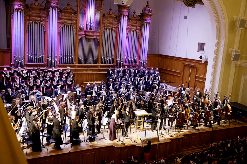 а ее четко выдержанная речитативно-мелодекламационная линия при неожиданно большой плотности оркестровой ткани потребовала голосов, гораздо более сильных и драматических, чем представленные на премьере, особенно — в мистических сценах с эклектичным наслоением достаточно мощного звучания хора и колоколов. Хоровую поддержку этому исполнению оказала Государственная хоровая капелла России имени Юрлова под управлением Геннадия Дмитряка.