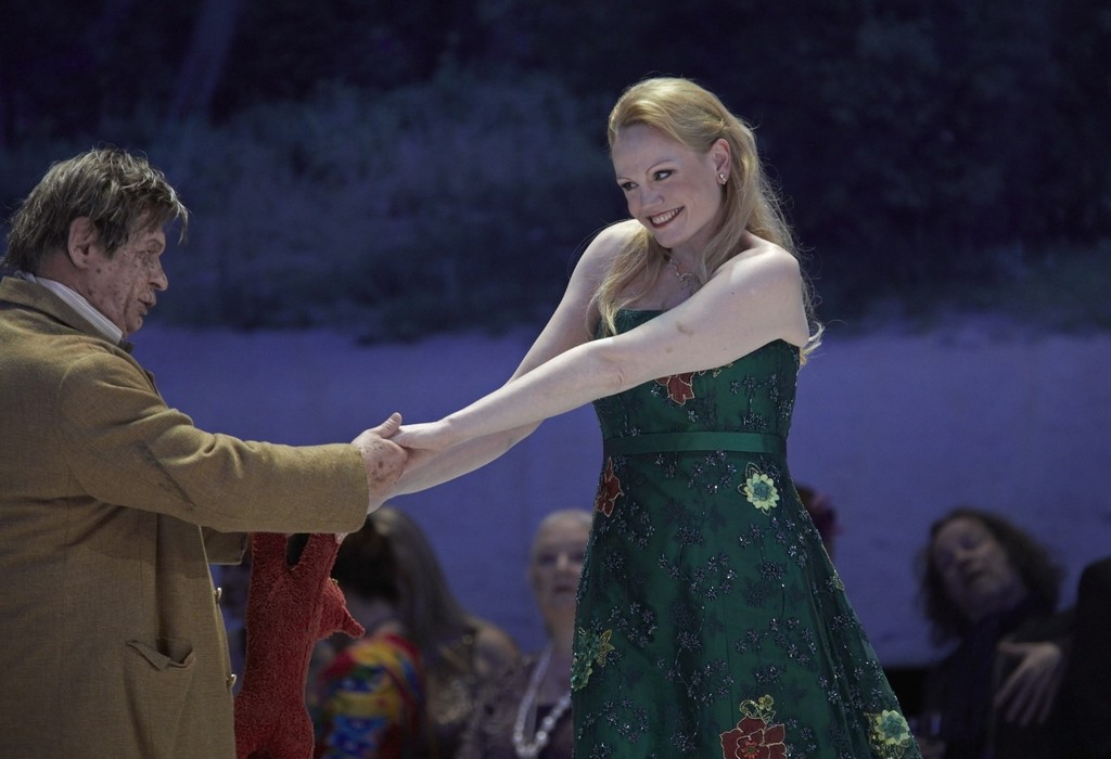 Линдсей Амман пела Ольгу, играя густыми плотными контральтовыми нотами, но со слишком сильным акцентом. Нельзя сказать, что Ольга в штутгартском спектакле – беззаботная и весёлая девушка, режиссёр даёт нам понять, что это – только маска, на самом деле она амбициозна и меркантильна, как мать, жесты которой копирует.