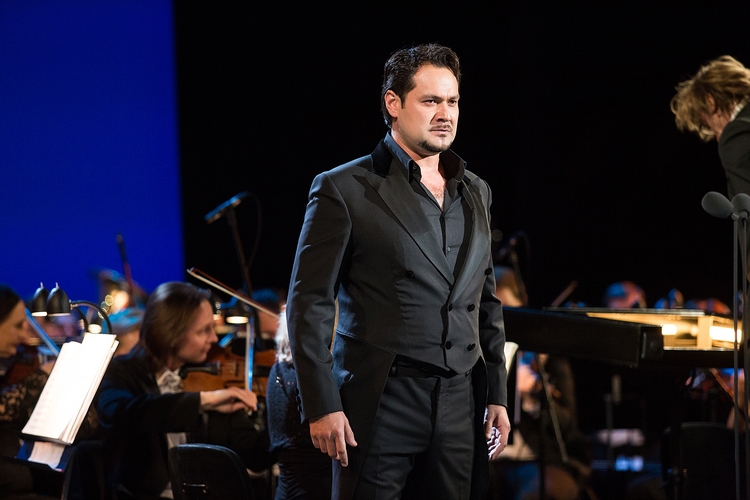 Впрочем, нельзя сказать, что концерт был прямо уж таки «сольным», учитывая, что партнером Абдразакова был ведущий баритон «Новой оперы», тоже успешно представляющий нашу оперную школу на мировом уровне, Василий Ладюк. В какой-то момент даже показалось, что хозяин сцены несколько затмил звездного гостя. Первый же выход Ладюка — ярчайше преподнесенная ария Станкара из оперы Верди «Стиффелио» (раритет, постоянным поклонникам этого артиста «Новой оперы», однако, знакомый).