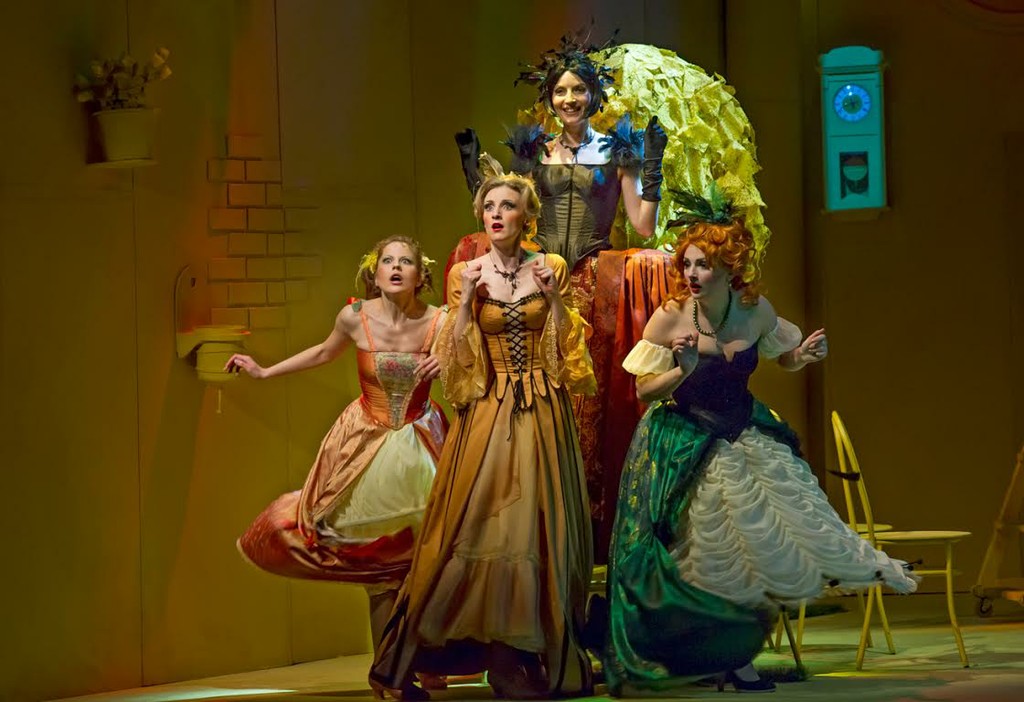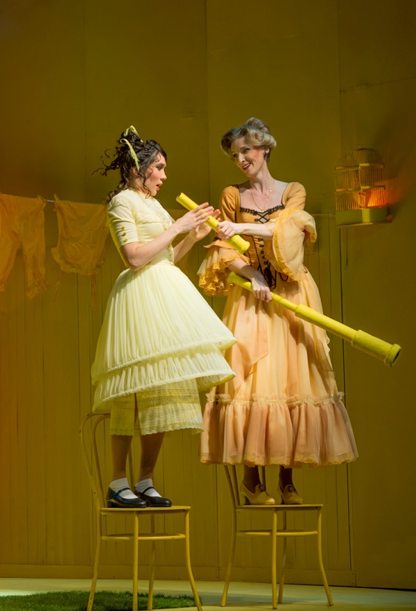 Всё буквально заряжено активностью и позитивом. Тому способствуют яркие солнечно-желтые краски в сценографии (художник-постановщик Сергей Бархин) и изысканные, стилизованные под условную старину платья (художник по костюмам Татьяна Бархина).