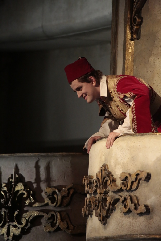 Возраст артиста тот же, что и у героя, он строен и привлекателен. Но вот что Феррандо — вообще первая роль, первый выход Алексея Неклюдова на профессиональную сцену в гриме и костюме, да ещё в Большом театре, верилось с трудом, настолько уверенно он провёл спектакль.