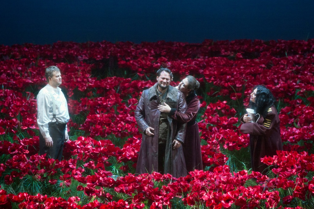 Особо следует сказать о картине первого половецкого стана (второго просто нет: из него остались лишь некоторые эпизоды). Сколько же восторгов приходилось слышать относительно бескрайнего поля маков, которое представляет собой сценографию этого акта! Но все эти восторги были бы уместны, если бы речь шла не о шедевре русской классической оперы, а о каком-нибудь бродвейским шоу, о мюзикле, например. В данном же случае налицо очевидная подмена сколько-нибудь значимой режиссерской идеи — а впрочем, таковых в этой постановке и нет вовсе — эффектным сценографическим трюком из разряда «сделаю им красиво».