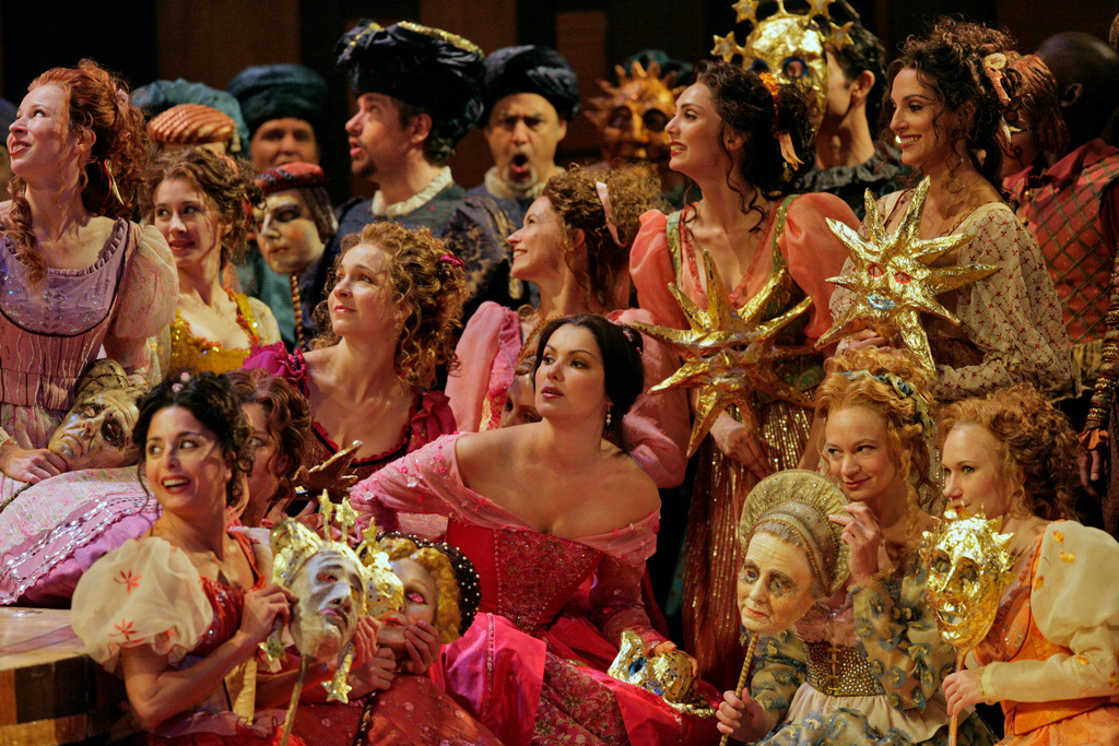 Одна из них – «Севильский цирюльник» Россини с выдающимся перуанцем Хуаном Диего Флоресом и знаменитой американкой Джойс ДиДонато в главных партиях, – несмотря на то, что Россия вошла в названный проект лишь с сезона 2011/2012, знакома нам по прошлогоднему летнему сезону повторных показов. Другие два популярных хита трансляций из «Met» первого сезона, такие как «Евгений Онегин» Чайковского с Дмитрием Хворостовским и Рене Флеминг и «Пуритане» Беллини с Анной Нетребко в партии Эльвиры, отечественным меломанам, конечно же, хорошо знакомы по их DVD-релизам.