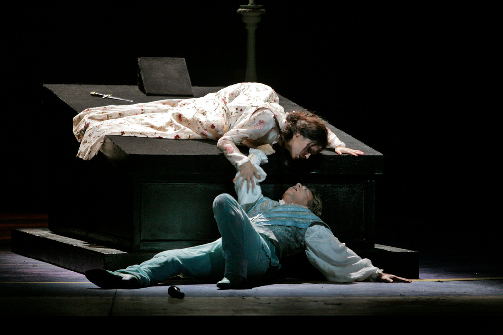 Но лично для меня наиболее сильный эффект живого восприятия связан с премьерой в Венской государственной опере в декабре 2002 года с очаровательной итальянкой Стефанией Бонфаделли, которая как-то поразительно быстро после этого исчезла из поля зрения мирового сообщества, и Нилом Шикоффом, который на тот момент давно уже перемахнув возраст Ромео, всё еще находился в потрясающей вокальной форме, поражая высочайшей культурой пения и поистине врожденным чувством музыкального стиля.