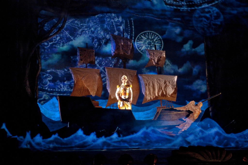 Премиленькая, надо сказать, мелодрамка получилась у Джереми Сэмса! И какое счастье, что в лице постановщиков спектакля автор такой захватывающей идеи нашел своих подлинных творческих единомышленников! Театральное воплощение этого американского диковинного «паштета», взывающее к парадной зрелищности, роскоши сценографии и богатству ярких реалистичных костюмов удалось на славу. Высокий дух барочного оперного действа, порядком дискредитированный в наше время выкрутасами режиссерской оперы, на сей раз царил осязаемо полновесно и убедительно ярко, доставляя истинно эстетическую радость погружения в чудесную сказочную притчу со счастливым финалом. Режиссер Фелим МакДермот, сорежиссер и сценограф Джулиан Крауч, художник по костюмам Кевин Поллард, художник по свету Брайан МакДевит и хореограф Грациэла Даниэле сделали всё, чтобы эта сказка захватила, увлекла и запомнилась надолго.