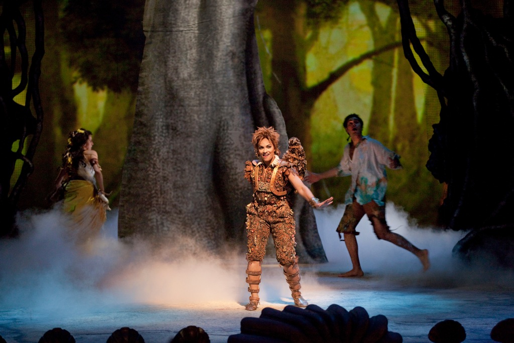 Певческий ансамбль этой постановки вообще сложился отменный: Миранда – Лизет Оропеза, Ариэль – Даниэль де Низ, Елена – Лейла Клэр, Гермия – Элизабет ДеШонг, Деметрий – Пол Эплби, Лизандр – Эллиот Мадор. Особо следует сказать об итальянском бас-баритоне Луке Пизарони – исполнителе партии Калибана. От невзгод и сердечных страданий этого персонажа просто сжималось сердце: в вокально-драматическом отношении певец-актер в гриме мима был поразительно фактурен и убедителен! В партии Фердинанда был задействован еще один контратенор, молодой американец Энтони Рот Костанцо. За ученически аккуратно проведенную партию (не самую главную в этой опере, ведь Фердинанд появляется практически лишь в финале) он получает уверенный зачет.