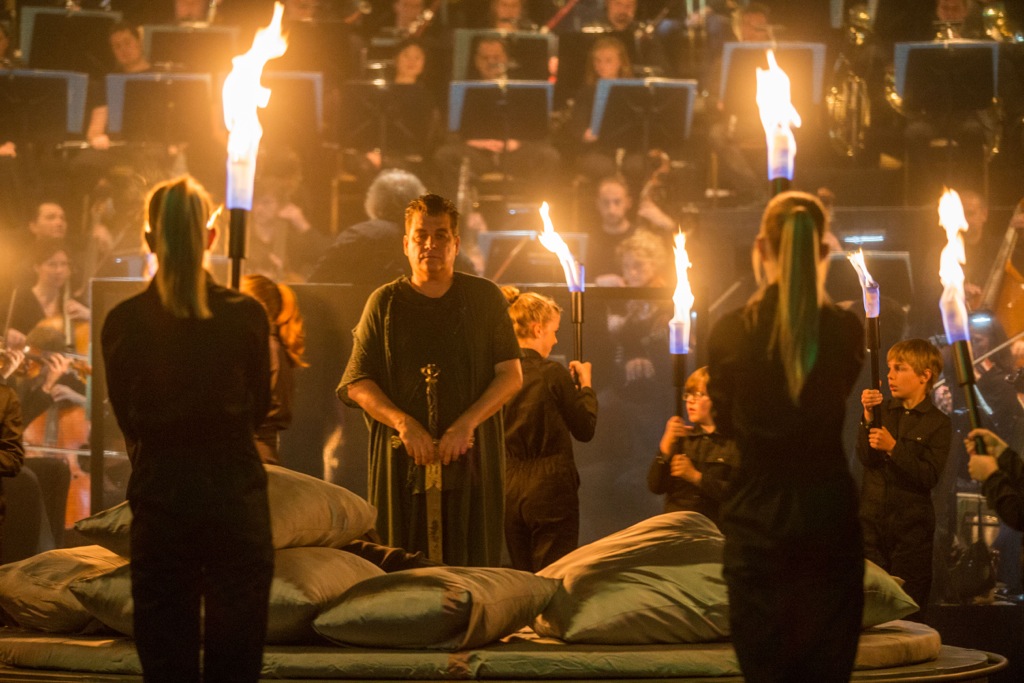 В отличие от Вагнера, спрятавшего оркестр, как нибелунгов, в «подземелье» бездонной оркестровой ямы Фестивального дома на Зелёном холме, Кун почти зеркально переносит оркестровый амфитеатр на сцену, и грандиозная стена звучащих инструментов (а вертикально расположенные группы духовых, особенно сияющая медь, выглядят фантастически красиво!) становится основной декорацией к разыгрываемому представлению.