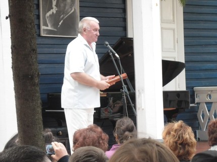 Концерт вёл самолично директор музея, заслуженный работник культуры Александр Иванович Еврмаков, объявлявший номера программы, исполняемой Луганским: