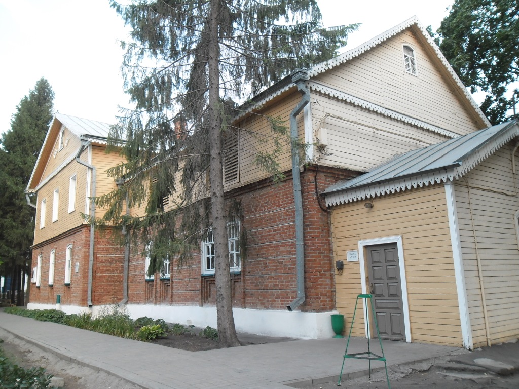 Рядом с ним расположен ещё один дом — кирпично-деревянный красно-жёлтой раскраски флигель, как и усадебный дом разобранный в 1918 году и воссозданный в 70-80-х годах: