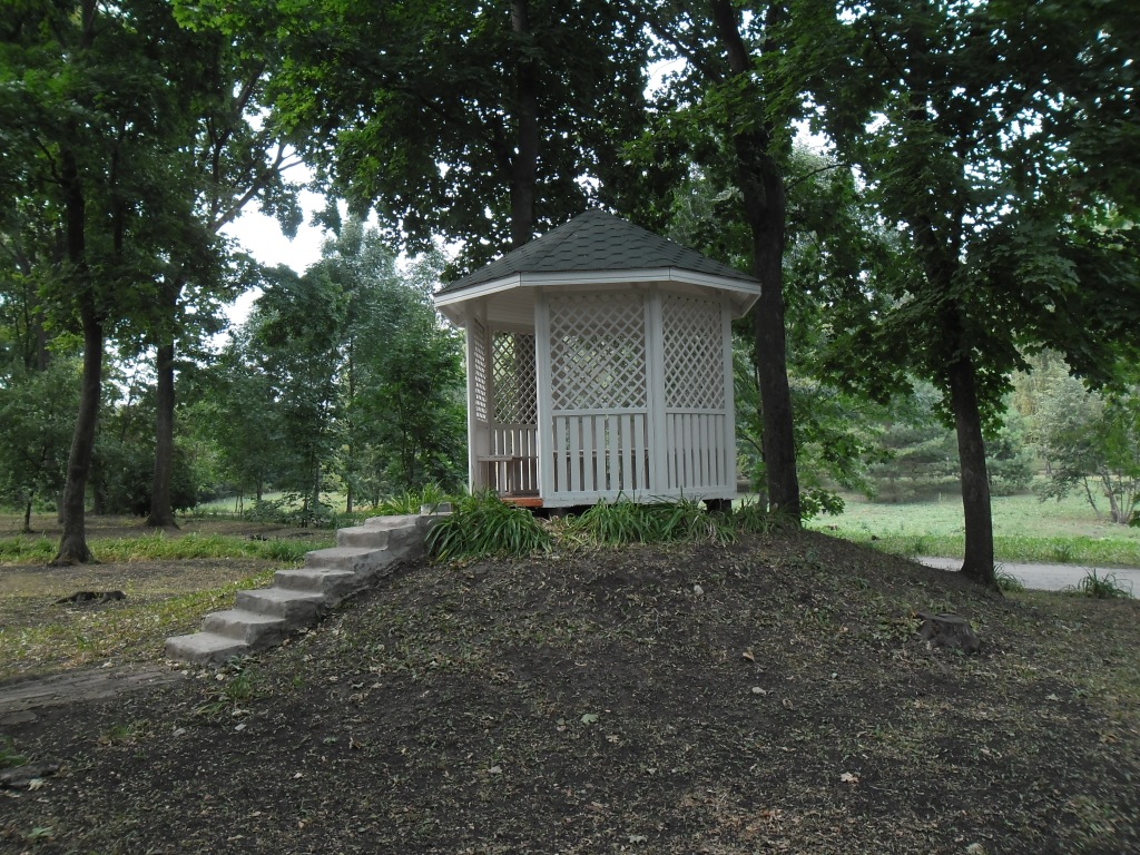 К одной из беседок на воде через усадьбу ведёт дивная зелёная аллея: