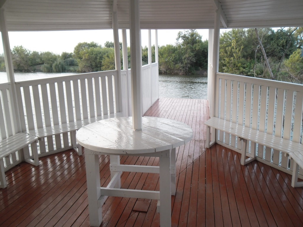 Сама беседка выходит прямо на пруд:
