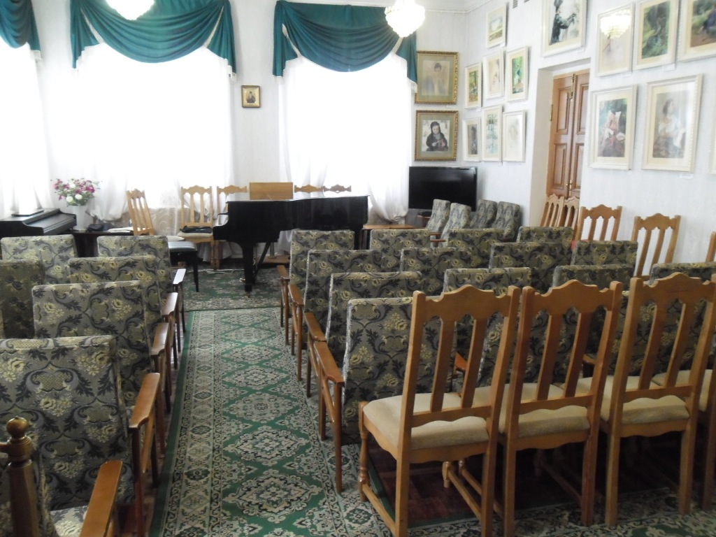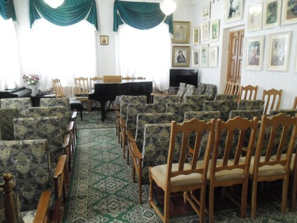 В интерьерах имеется концертное помещение, обустроенное на месте бывших детских спален: