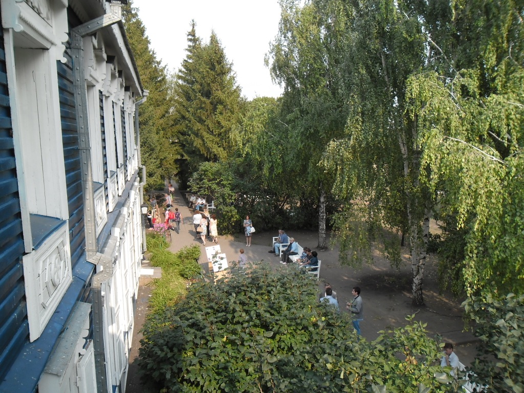 С балкона 2-го этажа усадебного дома открывается вид на усадьбу, концертную площадку и флигель: