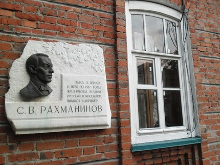 Именно в этом флигеле и в свои ранние приезды, и уже после женитьбы жил С. В. Рахманинов, о чём повествует расположенная на стене памятная табличка: