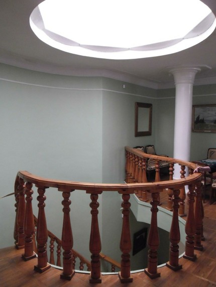 Воссоздана любопытная архитектура усадебного дома, в которой центральным элементом является стеклянный «фонарь», возвышающийся над зданием: