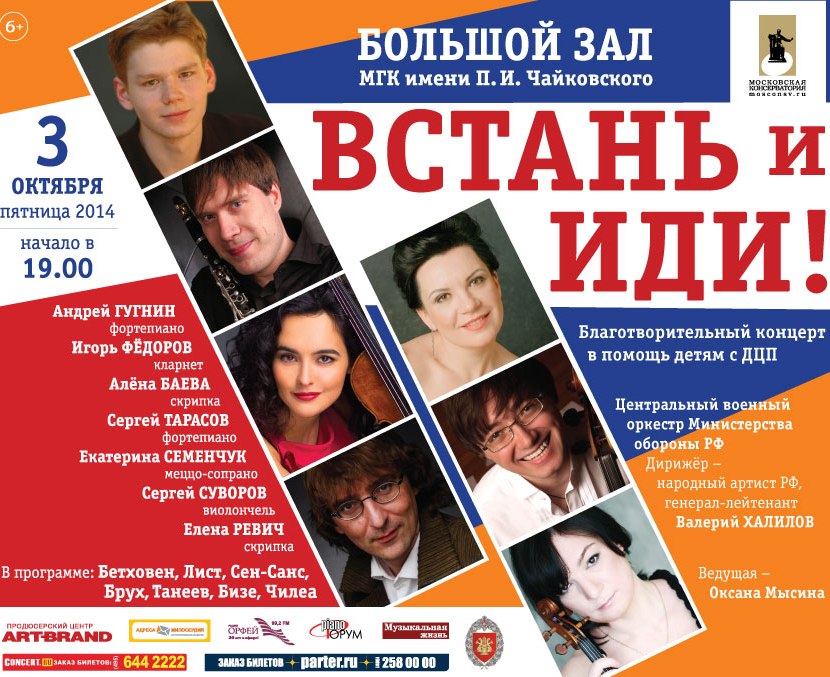 Продюсерский центр «Арт-Брэнд», Московская государственная консерватория им. П. И. Чайковского и Благотворительный фонд «Адреса милосердия» представляют второй концерт-акцию «Встань и иди!» в помощь детям с ДЦП.