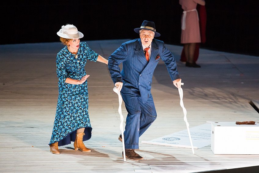 В спектакле есть прекрасно сделанная сценография (Ульрике Йохум), блестяще выстроенная «костюмерная палитра» (художник по костюмам — Ян Майер) и завораживающего качества свет (Ханнес Зеземанн и Ханс Фрюндт). В этом смысле постановка удалась. Что же было не так?