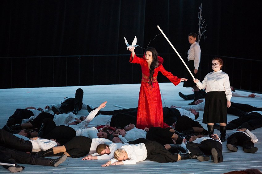 В режиссёрском дебюте Алексея Вэйро на сцене «Новой Оперы» этот тренд обретает своё новое звучание: слушать рассказ автора новой концепции о самой концепции намного интереснее, чем выискивать подтверждение словам режиссёра на перегруженном телодвижениями и инсталляциями врезающемся в зал планшете сцены.