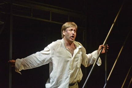 но и объем работы у нее по партитуре несопоставимо больше, и петь ей приходилось, легкомысленно бегая по крутым лесенкам (оформление сцены — лестницы, клетки и игра света, но как оказалось, ничего больше и не требуется).