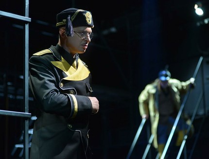 Агрессивные вспышки света, фонарики, решетки и кандалы нагнетают общую атмосферу страха. На сцене появляется диктатор Пизарро (Алексей Морозов) — персонаж в высшей степени эффектно сверкающий бритой головой и стеклами бериевских очков, перевоплощающийся при помощи смены головных уборов то в Наполеона, то в Муамара Каддафи, то в прочих тиранов (мелькает там, кстати, и советская фуражка со звездочкой).