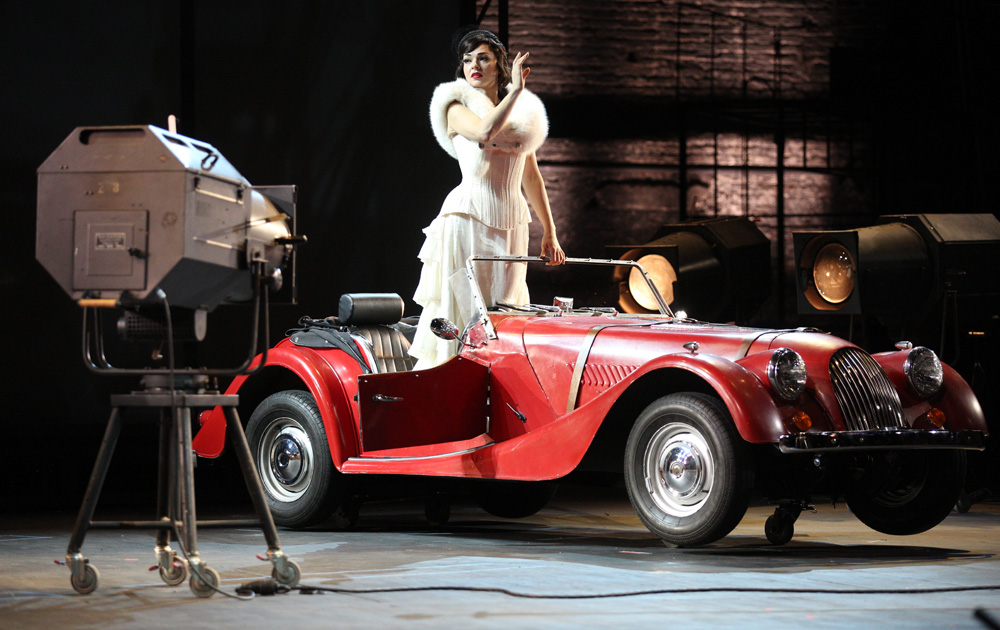 Постановка, осуществленная Юргеном Флиммом (режиссёр), Георгием Цыпиным (сценограф), Урсулой Кудрна (художник по костюмам), Александром Кибиткиным и Себастианом Альфонсом (художники по свету), переносит действие во времена расцвета американского кинематографа — в 30—40-е годы прошлого века — на голливудскую киностудию. Манон — начинающая кинозвезда, карьера которой зависит от всесильного продюсера Жеронта, — вынуждена сделать выбор между стремлением к славе и деньгам и любовью к пылкому коллеге по актёрскому цеху.