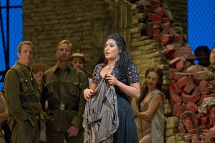 Не менее внятной, художественно мощной и вокально роскошной стала работа Аниты Рачвелишвили в титульной партии. Её Кармен не просто неформальный лидер-хулиганка: она женщина, измученная собственным эгоизмом. Она исступленно ищет объект для самоотречения, но не может найти. У Рачвелишвили, которая покорила меня своей Любашей в «Царской невесте» Чернякова и удивительным прочтением Кончаковны в его же «Князе Игоре»,