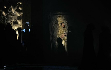 Для того, чтобы быстрее погрузить зрителей в атмосферу своего спектакля, Холина использует такой приём, как полное выключение света в зале перед началом представления.