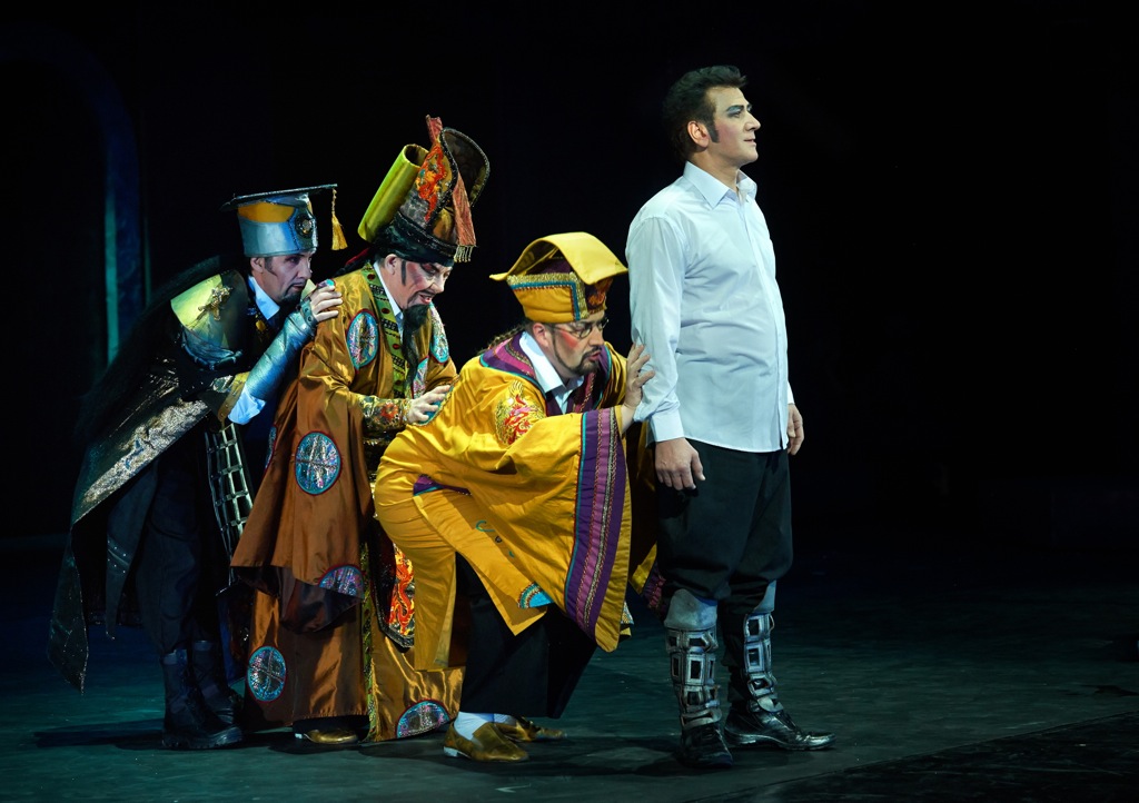 Жаннат Бактай предстала вполне профессиональной, но лишь старательно аккуратной исполнительницей: всё было на должном уровне, но ее трактовке явно недоставало живого эмоционального и артистического драйва. Вполне профессиональными оказались и новые мои встречи с Оксаной Крамаревой и Ахмедом Агади. Обоих в качестве приглашенных солистов не так уж и давно мне довелось по разу услышать в «Новой Опере» в Москве. Оксана Крамарева, не обладая полновесно мощным звучанием драмсопрано, относится к категории тех сопрано lirico spinto, которые в заведомо драматических партиях ощущают себя вполне уверенно, привнося в них особую женственность и глубокую чувственность. Так было в Москве в январе 2013 года в партии вердиевской Аиды (концертное исполнение), так стало и в Казани в партии пуччиниевской Турандот. Сцена загадок и предваряющая их выходная ария «In questa reggia» были проведены певицей необычайно захватывающе, выразительно ярко и музыкально сочно. А то, что в этой постановке отсутствует «громогласно-фанфарный» финал Альфано, в контексте природных возможностей голоса исполнительницы оказалось явно кстати. Здесь могла бы быть та же самая история, когда многие певицы-сопрано, как правило, уверенно чувствуют себя в сцене письма Татьяны в «Евгении Онегине» Чайковского, а драматических вокальных ресурсов для заключительной сцены с главным героем их голосам явно недостает. В отношении Оксаны Крамаревой этот вопрос, как и открытость финала постановки последней оперы Пуччини, пока остается открытым, но в этом тоже ведь есть своя меломанская интрига!