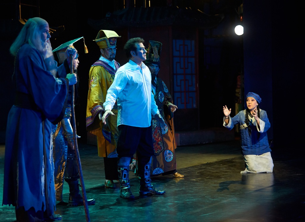 В московской «Новой Опере» Ахмеда Агади я услышал на премьере «Трубадура» Верди в середине декабря 2012 года, когда певец экстренно вошел в спектакль, заменив заболевшего исполнителя (к тому времени премьера «Турандот» в Казани успела уже состояться). По сравнению с практически белькантовой партией Манрико, в которой надо действительно много петь, много задействовать из технического вокального инструментария и много чувства вкладывать в роль на безупречной драматической кантилене, задачи партии Калафа несколько иные. И впечатление от нее, приобретенное в Казани, заведомо превосходит впечатление от партии Манрико. Этот тенор, которого я очень хорошо помню еще по его работе в Московском музыкальном театре имени Станиславского и Немировича-Данченко, всегда был заведомо лирическим по природе своего голоса. Однако с активным переходом в последние годы на партии драматического амплуа и в связи с небывалой востребованностью исполнителя именно в этом репертуаре, можно говорить лишь о благоприобретенной певцом лирико-драматической фактуре. Именно поэтому в драматических фрагментах партии Калафа певцу местами недостает вокального драматизма. Однако все «номенклатурные» номера этой партии – сольные эпизоды первого («Non piangere, Liù») и третьего («Nessun dorma») актов, а также сцену ответов на загадки Турандот певец проводит вполне зачетно, с немалым артистическим достоинством и убедительным ощущением чувства музыкального стиля.