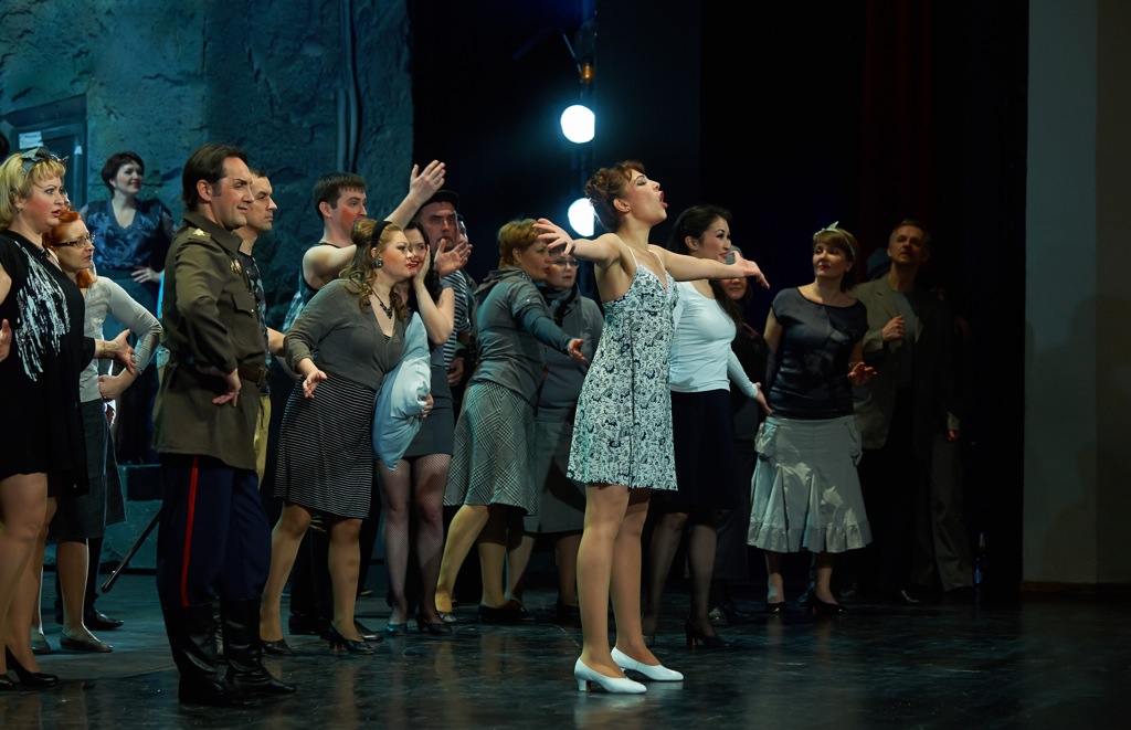 Даже их простое перечисление (эпизоды с ненормальной туристкой-японкой, сексапильной медсестрой, деклассированными «люмпенами» и смачными представителями весьма колоритной среды советского мещанского быта) – задача для критика явно неблагодарная, да и подробно останавливаться на этом, честно говоря, нет ни малейшего интереса, ни желания. Другое дело, что сами отношения между надменной Адиной и наивным простаком Неморино – сначала комичные, а в финале и весьма драматичные – в этом спектакле также изрядно приперчены визуальными остротами сценографии, мизансцен и пластики. Здесь практически те же самые «подтанцовки», что и в «Цирюльнике». Оправданность всего этого проблематична, а то, что отношения главного любовного дуэта и так достаточно приправлены скабрезностями сержанта Белькоре, еще одного претендента на руку Адины, а также плутовством Дулькамары, поставщика титульного атрибута этой оперы («эликсира любви»), постановщики словно и не замечают, искусственно насаждая скабрезности и плутовство собственного производства. Слава Богу, на сей раз делают это они вполне «невинно».