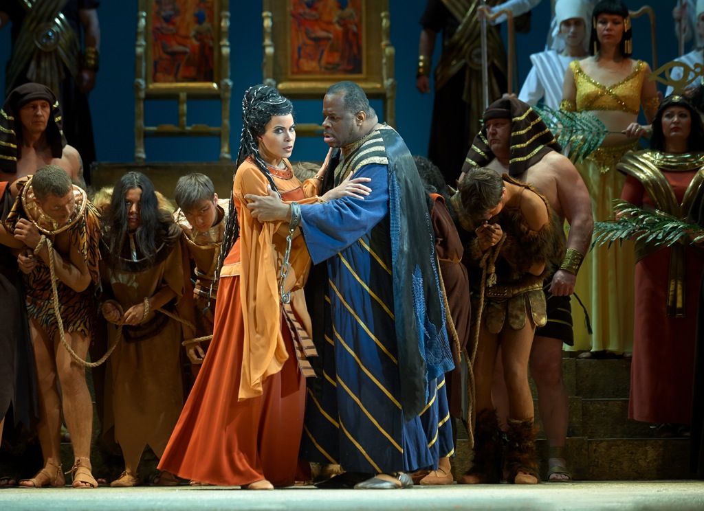 Основной вес партии Амонасро – вовсе не выходная ария в сцене триумфа, а именно дуэт с Аидой в третьем акте: это явный драматургический центр не только акта, но и всей оперы. И Лестер Линч проводит его с полным пониманием задач музыкального стиля – на должной высоте технической оснащенности и артистической выразительности. Его Аида, сопрано Сусанна Бранкини, предстает певицей однозначно грамотной и, с точки зрения драматической выразительности созданного образа, вполне убедительной, однако сама природа этого голоса, само качество его чрезмерно сухой и резкой вокальной эмиссии образ главной героини, вследствие отсутствия в его прорисовке чувственно теплых лирических красок, существенно обедняет. В силу этого первая ария Аиды, завершающая картину перед сценой триумфа и закономерно построенная на сквозном драматизме, впечатляет существенно больше, чем «Берег Нила», для которого в арсенале сопрано непременно должны быть не только драматизм, но и проникновенная лиричность. Впрочем, отдельные «инъекции лиризма» в сценах с Радамесом и в третьем, и в четвертом (финальном) акте певица, хотя и не особо результативно, предпринимать всё же пыталась.