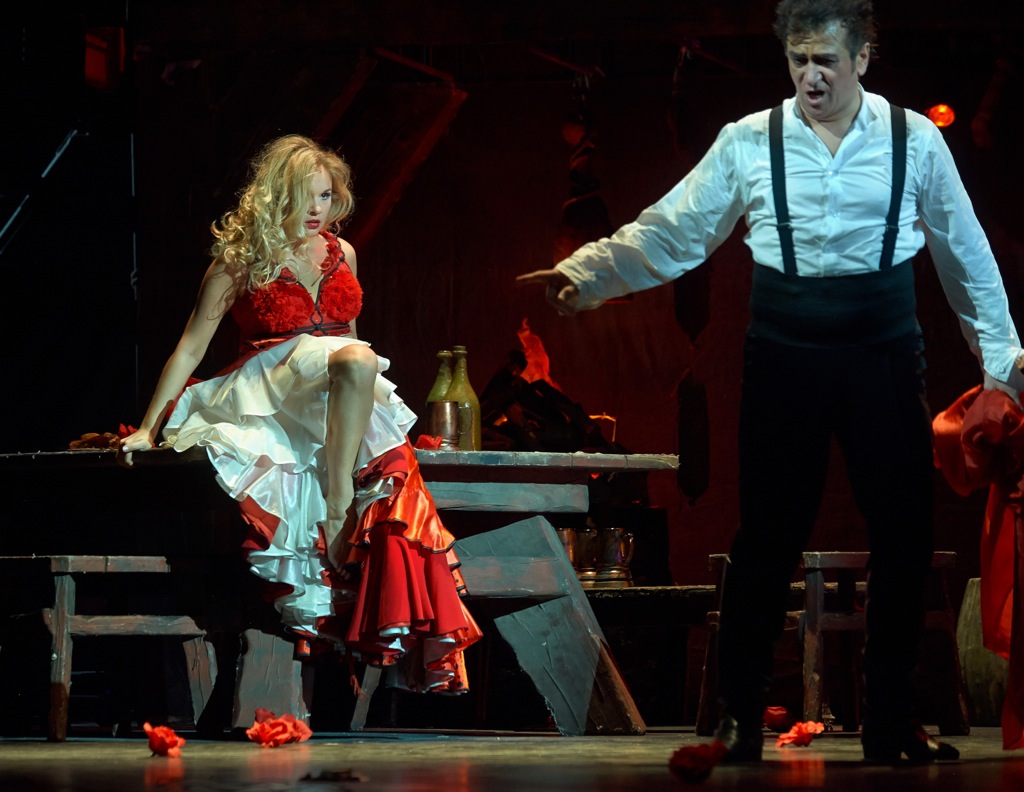 Одно дело – партия колоратурного меццо-сопрано, к примеру, в россиниевской «Итальянке в Алжире», в которой певица сейчас регулярно появляется в Москве, ведь с помощью стилистических изысков и «тонкой вокальной настройки» поспорить с природой своего голоса в данном случае певице удается весьма эффектно и убедительно. Другое дело – партия Кармен, с которой этот фокус уже не проходит, но именно постановка Георгия Ковтуна – легкая, изящная, красочная и танцевально-хореографически наполненная гораздо более, чем обычно – всё же дала певице шанс достойно выйти из непростой для нее ситуации.