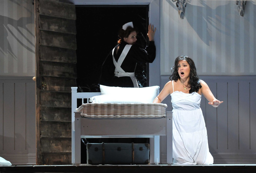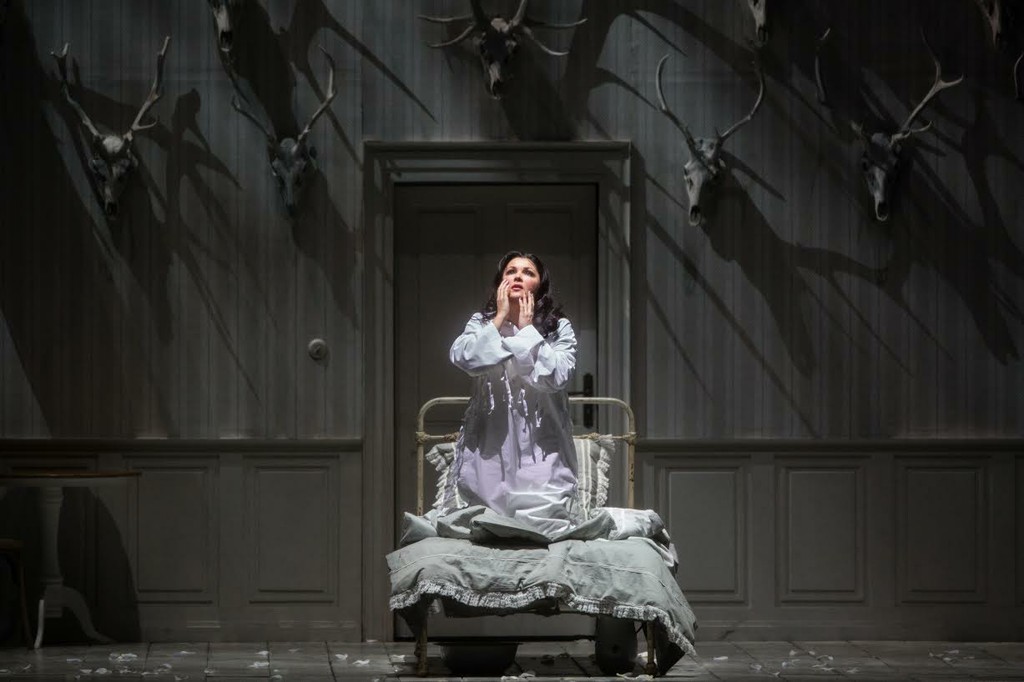 И у режиссера есть на это ответ: король Рене — совсем не любящий отец, каковым мы привыкли его видеть. В трактовке Трелинского он, скорее, — безжалостный охотник, о чем красноречиво свидетельствует убийство оленя во время увертюры с последующим «разделыванием» туши, а также единственная стена в комнате Иоланты, увешанная трофейными головами. Само помещение напоминает больничную палату, где «прекрасную» компанию девушке составляют надменно усмехающиеся служанки-надсмотрщицы. Иоланта — словно один из трофеев своего отца — безвольно существует в установленных им границах и не требует выхода за их пределы.