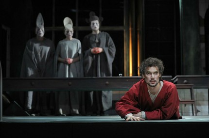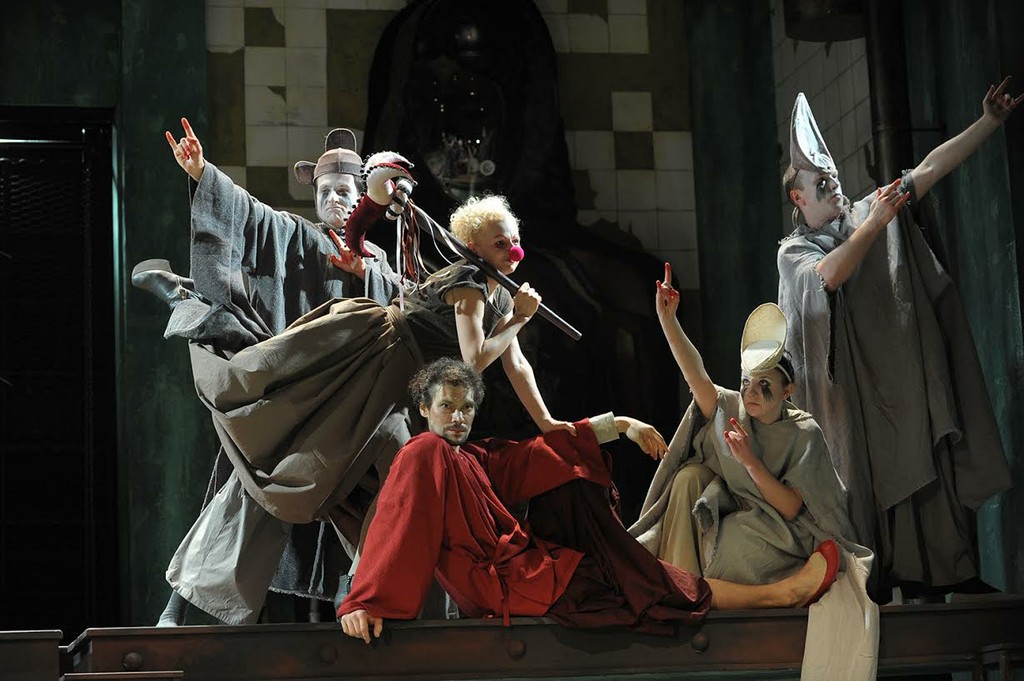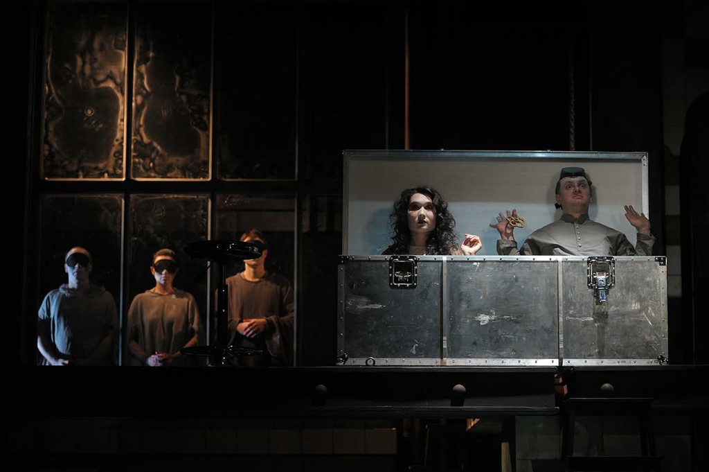 и тонкий дуэт Тития и Порк в начале второго действия, стилизованного под манеру Генделя, и ангельское соло мальчика — Микаса, под арфу и флейты — пробирают до мурашек. Да и абсурдно-жесткие моменты с Порк-шутом и праведными сыновьями впечатляли своими неожиданными контрастами.