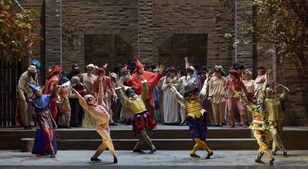 Многослойный режиссерский бутерброд с истинным знанием актерского дела складывается из королевской линии Маргариты, аристократической линии Изабеллы и Мержи, гротесковой линии Кантарелли и Коменжа, мещанско-обывательской линии Нисетты и Жиро, а также из хоровых сцен и двух дивертисментов («Маскарад» и «Танец лучников»).