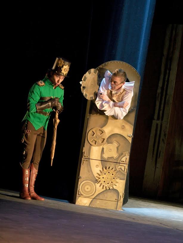 Это артист с ярко выраженным актёрским талантом, поэтому и механистичные движения, и точная игра с реквизитом (зонтиком) достойны высокой оценки. А вот второй часовщик — Алексей Перепрыгин, выступавший 30 апреля, был откровенно слаб, неуверен в себе, а его камерный голос затерялся даже в уменьшенном пространстве сцены и зала и в заключительном квинтете и вовсе был не слышен.