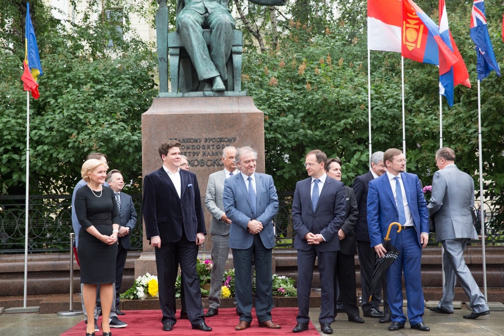 Масштабностью организаторы конкурса попытались поразить уже в день открытия. Флаги стран-участниц, расставленные по периметру «ферматы» (так консерваторцы любовно именуют памятник Чайковскому в полукружье изгороди, лавочек и кустов сирени), звучащий из колонок в режиме нон-стоп Первый фортепианный концерт, толпа журналистов и телевизионщиков, соответственно толпа зевак и, наконец, целая делегация великих мира сего, возлагающих хризантемы к подножию памятника, — всё это производило впечатление. Появилось ощущение праздника, причастности к историческому событию.