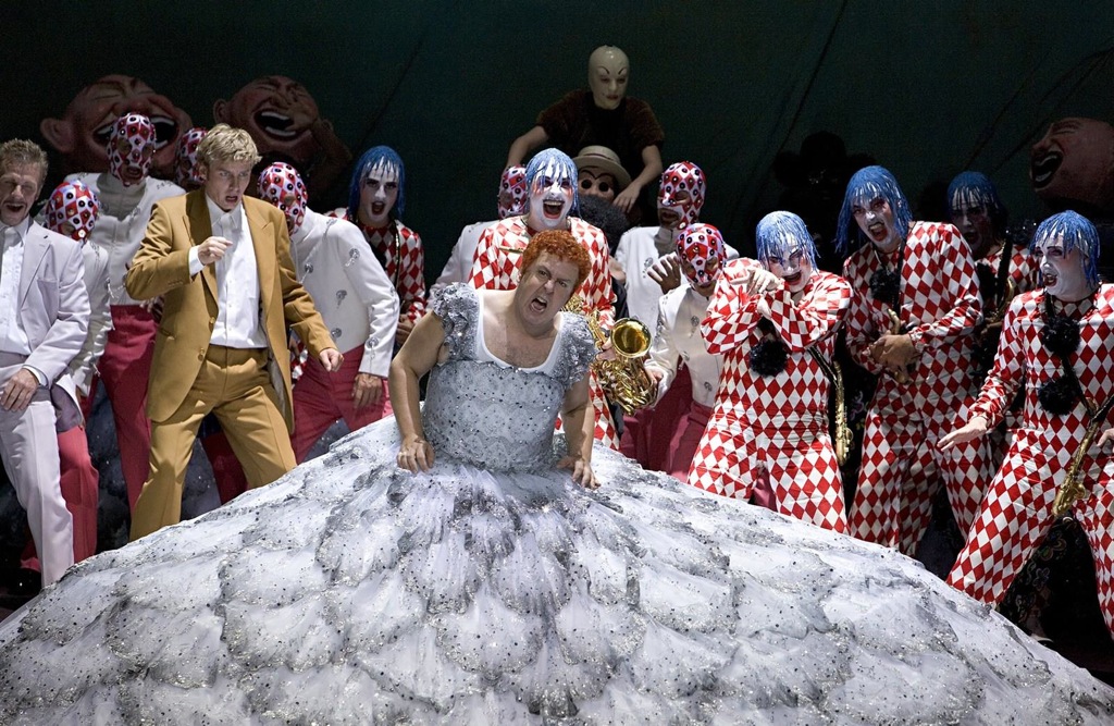 Нетрудно догадаться, что для театра с названием Комише-опер идея связи со смехом как нигде актуальна: оперетты, комические оперы всегда были заметной частью репертуара. «Риголетто», конечно, не итальянская опера-буффа, однако главный герой — шут, и всё происходящее действие похоже на жестокую, искажённую шутку, по крайней мере, в постановке Барри Коски.